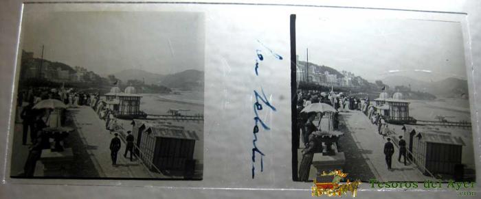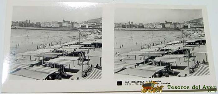 ANTIGUA FOTOGRAFIA ESTEREOSCOPICA DE SAN SEBASTIAN - PLAYA - EN CRISTAL - MIDE 10,7 X 4,4 CMS.