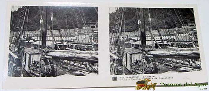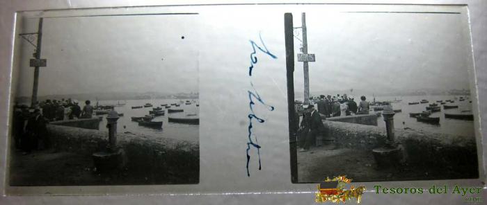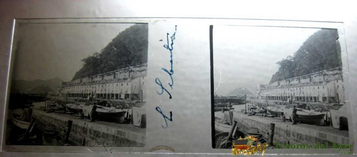 ANTIGUA FOTOGRAFIA ESTEREOSCOPICA DE SAN SEBASTIAN - BARCO - EN CRISTAL - MIDE 10,7 X 4,4 CMS.