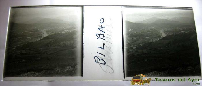 ANTIGUA FOTOGRAFIA ESTEREOSCOPICA DE PANORAMICA DE BILBAO - EN CRISTAL - MIDE 10,7 X 4,4 CMS