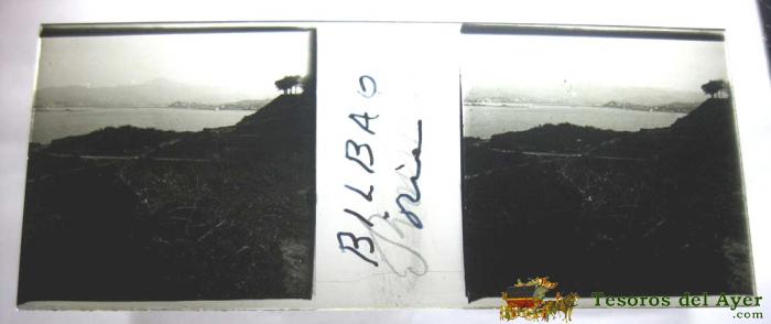 ANTIGUA FOTOGRAFIA ESTEREOSCOPICA DE BILBAO - EN CRISTAL - VIZCAYA - MIDE 10,7 X 4,4 CMS