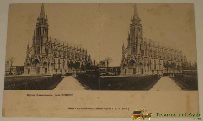 ANTIGUA POSTAL ESTEREOSCOPICA DE IGLESIA BONSECOURS PRES ROUEN - ESTEREOSCOPIA - NO CIRCULADA - SIN DIVIDIR.