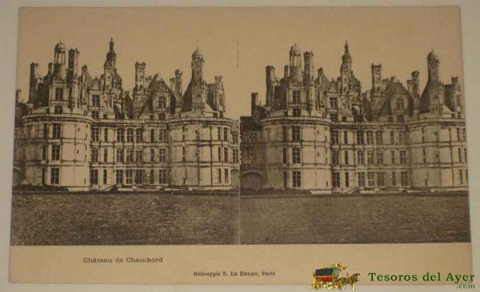 ANTIGUA POSTAL ESTEREOSCOPICA DE CHATEAU DE CHAMBORD - ESTEREOSCOPIA - NO CIRCULADA - SIN DIVIDIR.