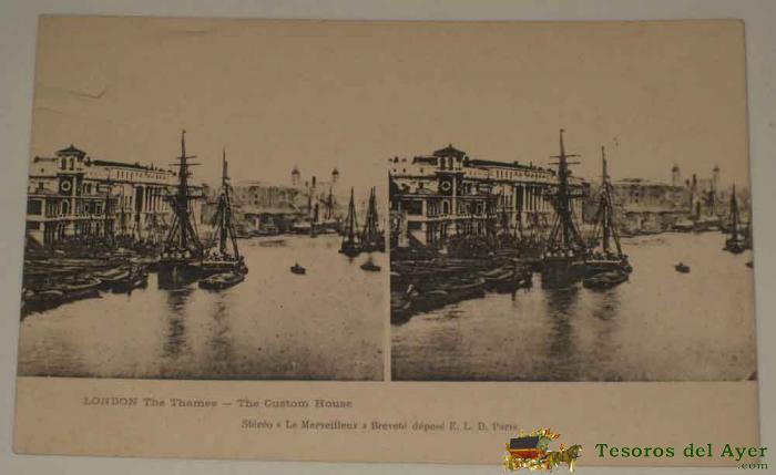 ANTIGUA POSTAL ESTEREOSCOPICA DE LONDON THE THAMES - ESTEREOSCOPIA - NO CIRCULADA - SIN DIVIDIR.