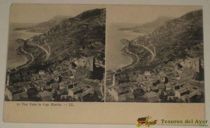 ANTIGUA POSTAL ESTEREOSCOPICA DE VUE VERS LE CAP MARTIN - ESTEREOSCOPIA - NO CIRCULADA - SIN DIVIDIR.