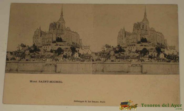 ANTIGUA POSTAL ESTEREOSCOPICA DE MONT SAINT MICHEL - ESTEREOSCOPIA - NO CIRCULADA - SIN DIVIDIR.