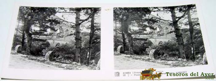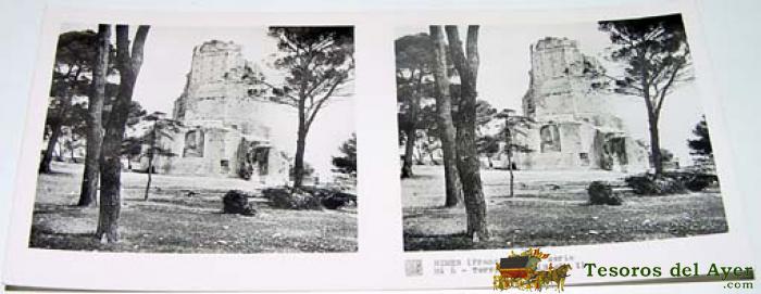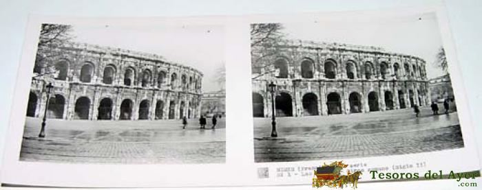 ANTIGUA FOTO ESTEREOSCOPICA DE FRANCIA - NIMES - 6 X 13 CMS - RELLEY - EL ESCANER TOMADO NO HACE JUSTICIA A LA ESTEREOSCOPIA.
