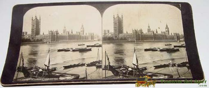 ANTIGUA ESTEREOSCOPIA DEL PARLAMENTO DE LONDRES (INGLATERRA) - MIDE 18X9 CMS.