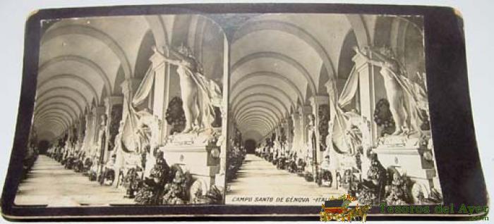 ANTIGUA ESTEREOSCOPIA DEL CAMPO SANTO DE GENOVA (ITALIA) - MIDE 18X9 CMS.