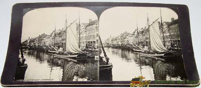 ANTIGUA ESTEREOSCOPIA DEL PUERTO DE COPENHAGUE (DINAMARCA) - MIDE 18X9 CMS.