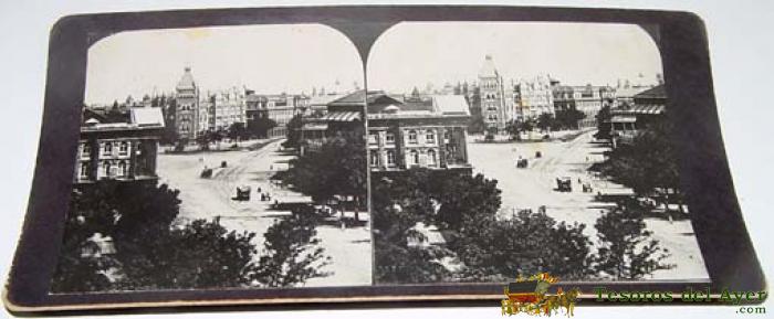 ANTIGUA ESTEREOSCOPIA VISTA PARCIAL DE UNA CIUDAD EUROPEA - MIDE 18X9 CMS.