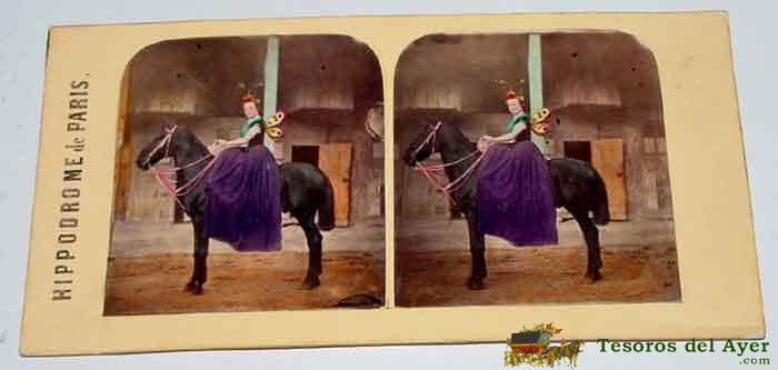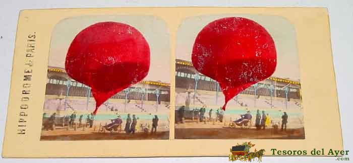 ANTIGUA FOTO ESTEREOSCOPIA DE EL ANTIGUO CIRCO DE PARIS HIPPODROME - MIDE 18X8,5 CMS. -