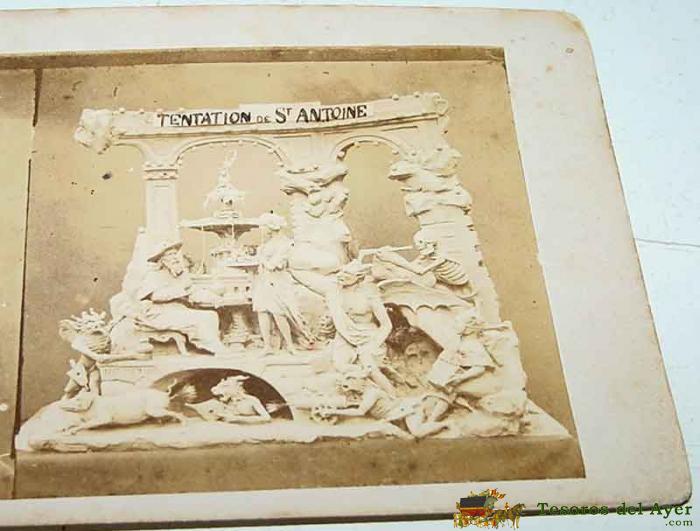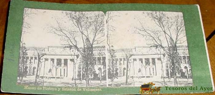 ANTIGUA ESTEREOSCOPIA - COLECCION C. T. SERIA A 17 X 9 CMS - MUSEO DE PINTURA Y ESTATUA DE VELAZQUEZ - REVERSO CON PUBLICIDAD DE TIENDA DE APARATOS DIVERSOS.
