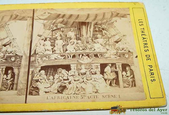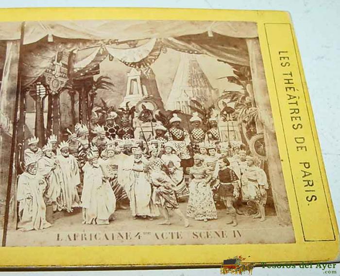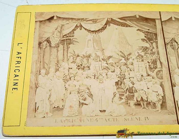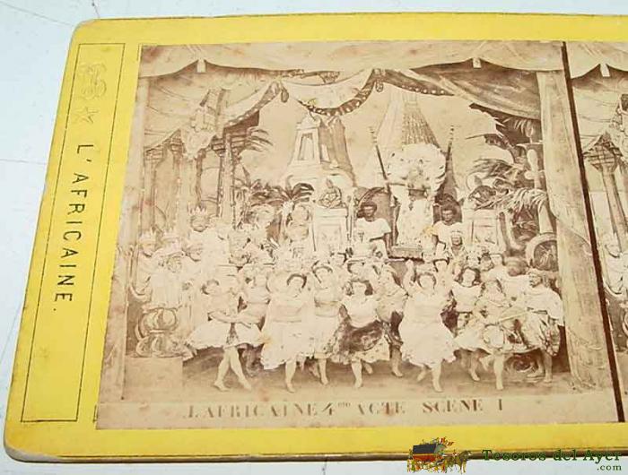 ANTIGUA FOTO ESTEREOSCOPICA DE LA OPERA LA AFRICANA - MIDE 18X8,5 CMS. - SIGLO XIX - AFRICAINE - GIACOMO MEYERBEER - óPERA EN CINCO ACTOS CON LIBRETO DE SCRIBE, QUE SE ESTRENó PóSTUMAMENTE A LA MUERTE DEL AUTOR, EL 28 DE ABRIL DE 1865 EN LA ÓPERA DE PARíS