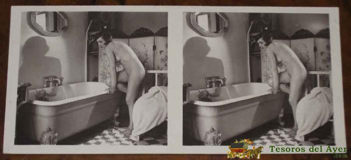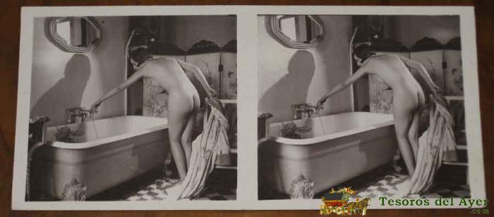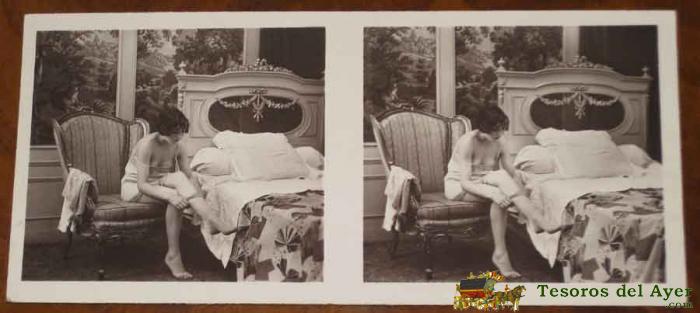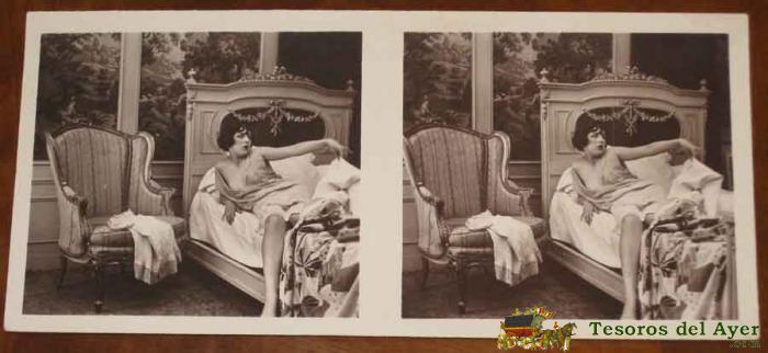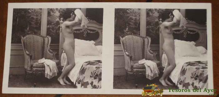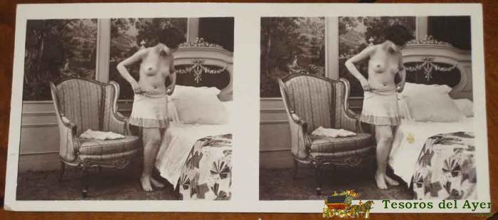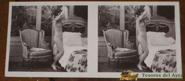 ANTIGUA FOTOGRAFIA ESTEREOSCOPICA EROTICA CON DESNUDO DE MUJER - MIDE 13 X 6 CMS. P.C PARIS