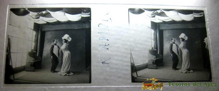 ANTIGUA FOTOGRAFIA ESTEREOSCOPICA DE LA ARTISTA R. AMOR - EN CRISTAL - MIDE 10,7 X 4,4 CMS.