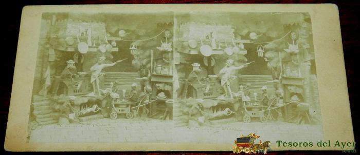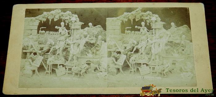 ANTIGUA FOTO ESTEREOSCOPICA DIABLERIES. ESTEREOSCOPIA DE DIABLERIES - DIABLOS Y ESQUELETOS - MIDE 18X8,5 CMS. - INFIERNO, DIABLOS, SATAN - SIGLO XIX