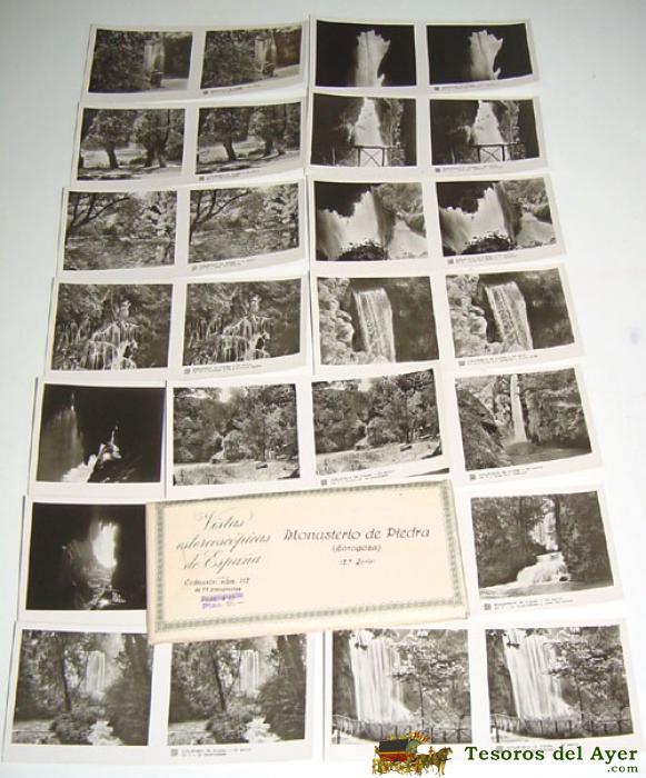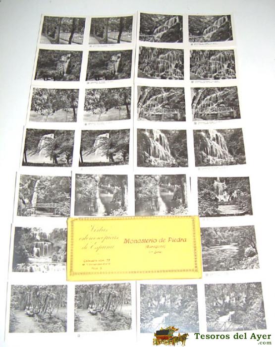 ANTIGUAS CUADERNILLO CON 15 VISTAS ESTEREOSCOPICAS DE MONASTERIO DE PIEDRA (ZARAGOZA) - 2ª SERIE - MIDE 6X13 CMS.