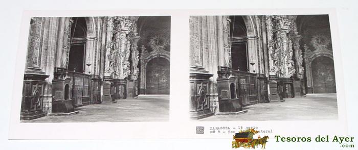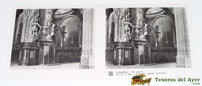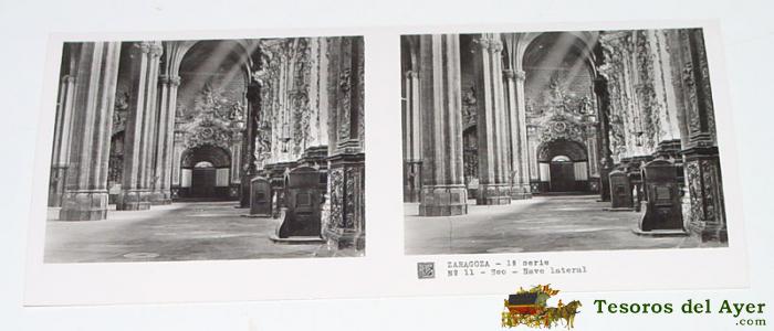 ANTIGUA FOTOGRAFIA ESTEREOSCOPICA DE ZARAGOZA - SEO - NAVE LATERAL - 1ª SERIE - NUM. 8 - MIDE 13 X 6 CMS APROX.