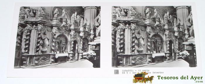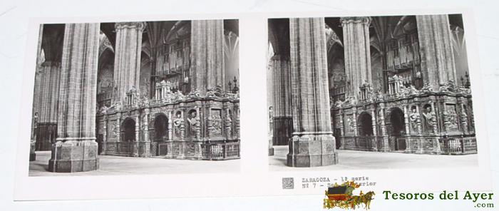 ANTIGUA FOTOGRAFIA ESTEREOSCOPICA DE ZARAGOZA - SEO - INTERIOR - 1ª SERIE - NUM. 7 - MIDE 13 X 6 CMS APROX.