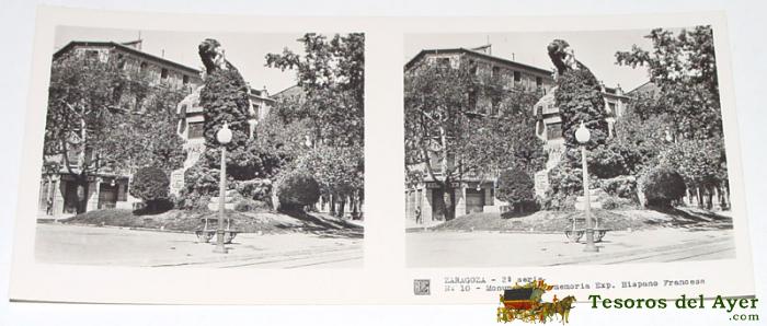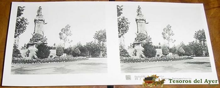 ANTIGUA FOTOGRAFIA ESTEREOSCOPICA DE ZARAGOZA - MONUMENTO HEROES INDEPENDENCIA - 1ª SERIE - NUM. 3 - MIDE 13 X 6 CMS APROX.