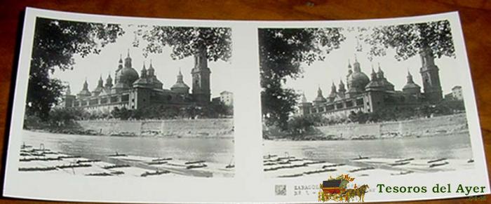 ANTIGUA FOTO ESTEREOSCOPICA DE ZARAGOZA - 6 X 13 CMS - RELLEY - EL ESCANER TOMADO NO HACE JUSTICIA A LA ESTEREOSCOPIA.
