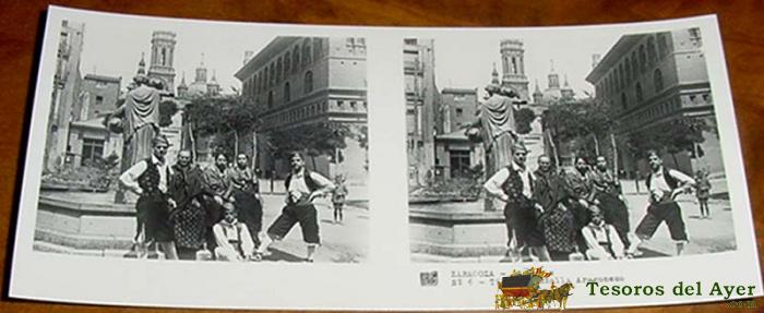 ANTIGUA FOTOGRAFIA ESTEREOSCOPICA DE ZARAGOZA - TIPICA RONDALLA ARAGONESA - 1ª SERIE - NUM. 6 - MIDE 13 X 6 CMS APROX.