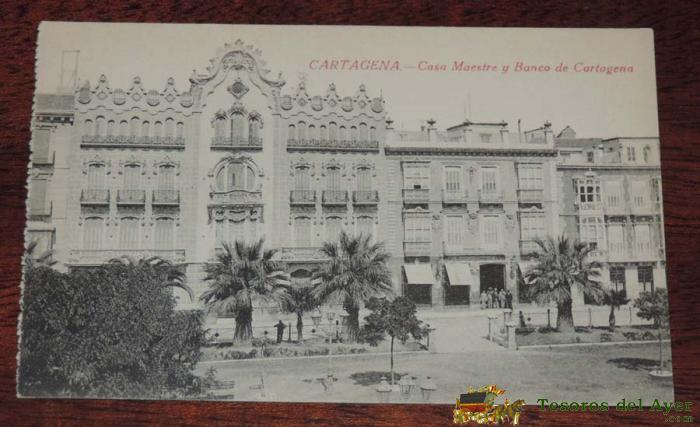POSTAL DE CARTAGENA, MURCIA, CASA MAESTRE Y BANCO DE CARTAGENA, ED. J. CASAU, NO CIRCULADA.
