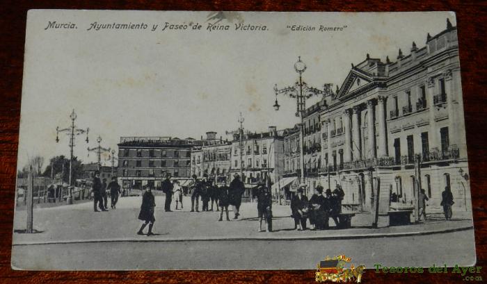 POSTAL DE MURCIA: AYUNTAMIENTO Y PASEO DE LA REINA VICTORIA (ED.ROMERO), NO CIRCULADA.