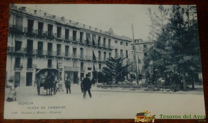 POSTAL DE MURCIA, PLAZA DE CAMACHO. 1190 HAUSER Y MENET. SIN DIVIDIR. NO CIRCULADA.