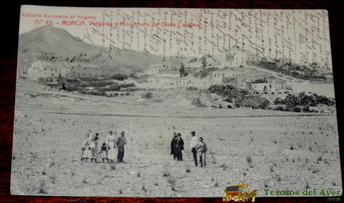POSTAL DE MURCIA, VERDOLAY Y MONASTERIO DE SANTA CATALINA, ED. SUCESORES DE NOGUES, N. 49, CIRCULADA.
