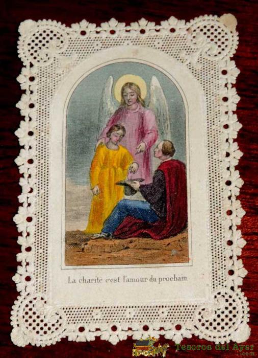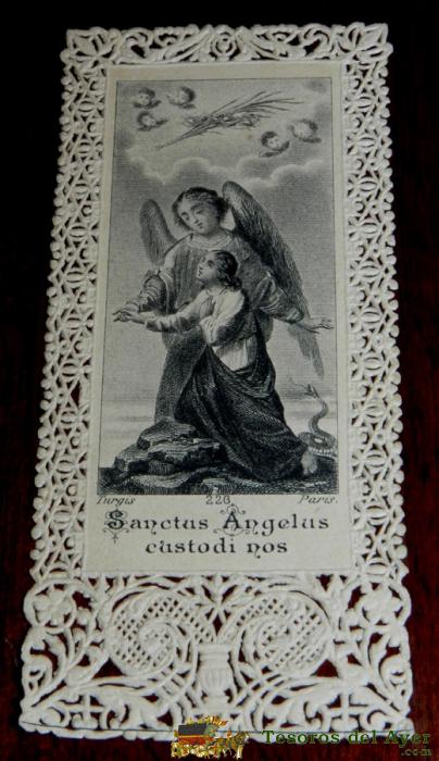 ANTIGUA ESTAMPA CALADA RELIGIOSA DE EL ANGEL DE LA GUARDA, FINALES DEL SIGLO XIX, MIDE 9 X 4 CMS. EXCELENTE ESTADO.