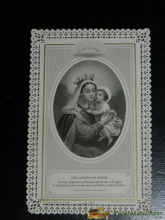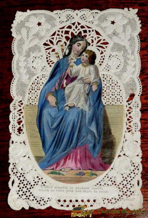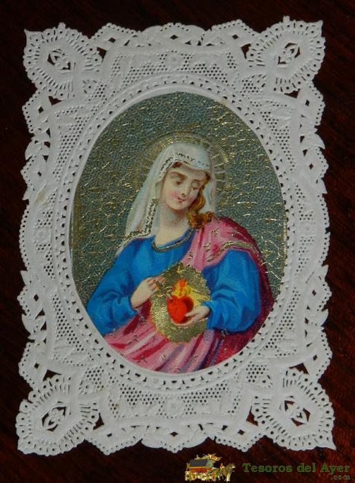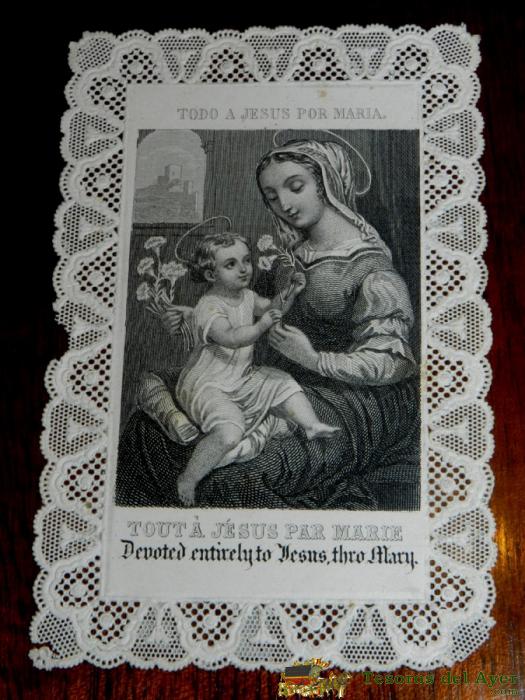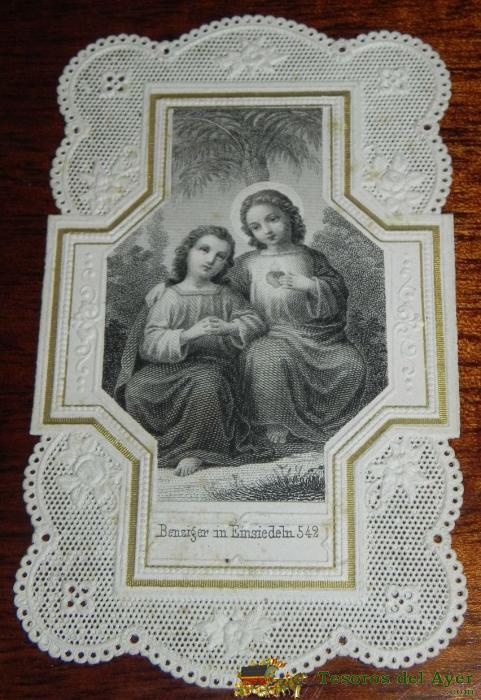 ANTIGUA ESTAMPA CALADA RELIGIOSA DE JESUS Y MARIA, FINALES DEL SIGLO XIX, MIDE 11,2 X 7,5 CMS. BUEN ESTADO.