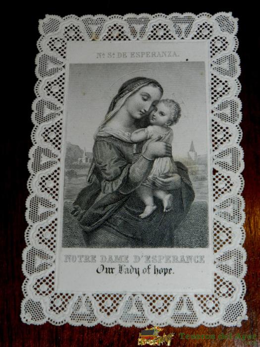 ANTIGUA ESTAMPA CALADA RELIGIOSA DE JESUS NUESTRA SEÑORA DE LA ESPERANZA, FINALES DEL SIGLO XIX, MIDE 11,2 X 7,5 CMS. BUEN ESTADO.