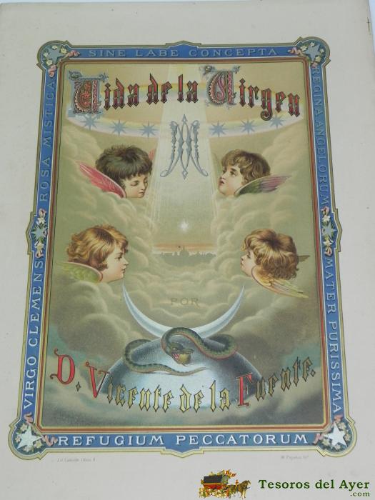 ANTIGUA LITOGRAFIA DE VIDA DE LA VIRGEN, LITOGRAFIA LABIELLE, M PUJADAS, PRECIOSA MIDE 38,5 X 27,5 CMS.