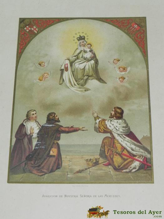 ANTIGUA LITOGRAFIA DELA APARICION DE NUESTRA SEÑORA DE LAS MERCEDES, LITOGRAFIA LABIELLE, R. ROCABERT, PRECIOSA MIDE 38,5 X 27,5 CMS.