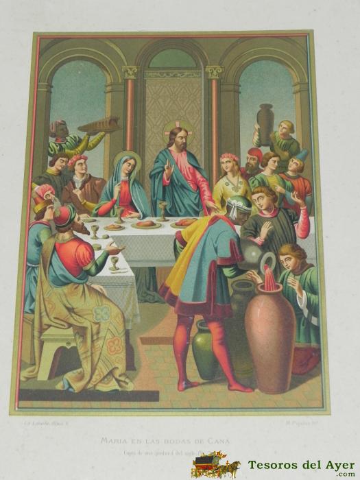 ANTIGUA LITOGRAFIA DE MARIA EN LAS BODAS DE CANA, COPIA DE UNA PINTURA DEL SIGLO XV), LITOGRAFIA LABIELLE, R. ROCABERT, PRECIOSA MIDE 38,5 X 27,5 CMS.
