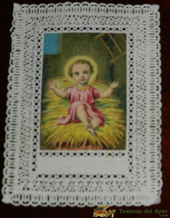 ANTIGUA ESTAMPA BORDADA Y CALADA RELIGIOSA, DE EL NIÑO JESUS, FINALES DEL SIGLO XIX, MIDE 9,5 X 7 CMS. TAL COMO SE VE EN LAS FOTOS.