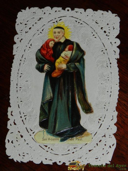 ANTIGUA ESTAMPA CALADA RELIGIOSA DE SAN VICENTE DE PAUL, FINALES DEL SIGLO XIX, MIDE 10,5 X 6,8 CMS. BUEN ESTADO.