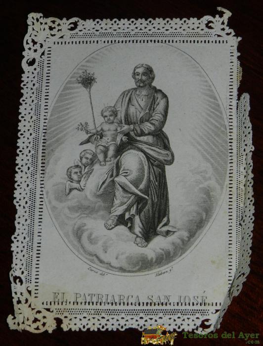 ANTIGUA ESTAMPA BORDADA Y CALADA RELIGIOSA, DE EL PATRIARCA SAN JOSE FINALES DEL SIGLO XIX, MIDE 11,5 X 8 CMS. TAL COMO SE VE EN LAS FOTOS.