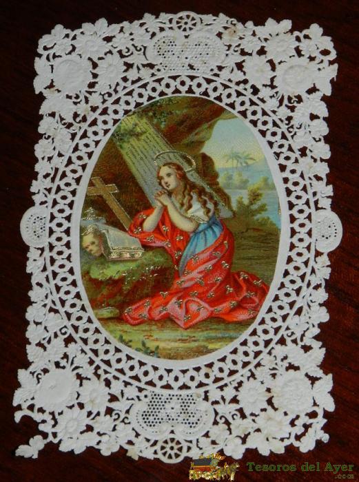 ANTIGUA ESTAMPA RELIGIOSA CALADA O DE PUNTILLA, SIGLO XIX, EXCELENTE ESTADO DE CONSERVACION.