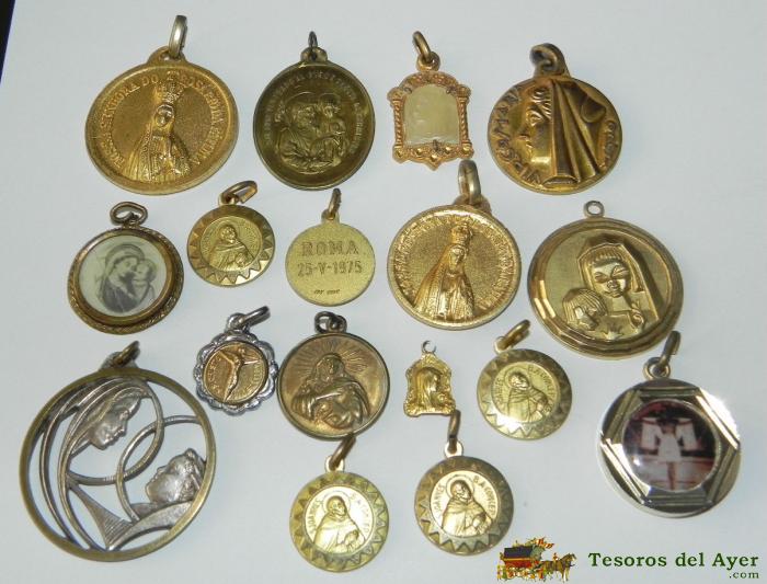 LOTE DE 17 MEDALLAS RELIGIOSAS, TAL COMO SE VE EN LA FOTOGRAFIA PUESTA.