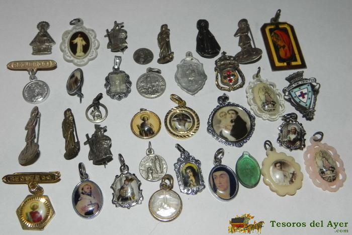 LOTE DE 34 MEDALLAS RELIGIOSAS, TAL COMO SE VE EN LA FOTOGRAFIA PUESTA.