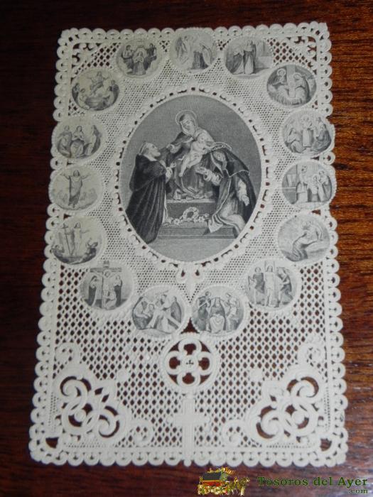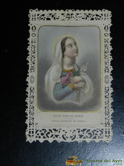 ANTIGUA ESTAMPA BORDADA Y CALADA RELIGIOSA, FINALES DEL SIGLO XIX, MIDE 8,3 X 5,5 CMS. BUEN ESTADO.