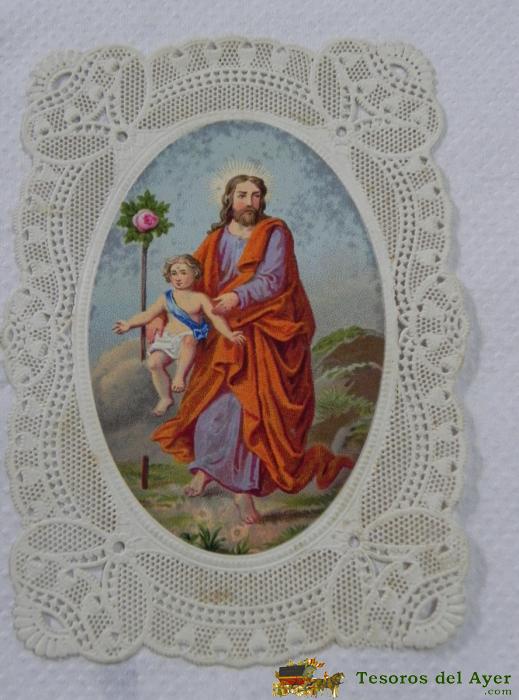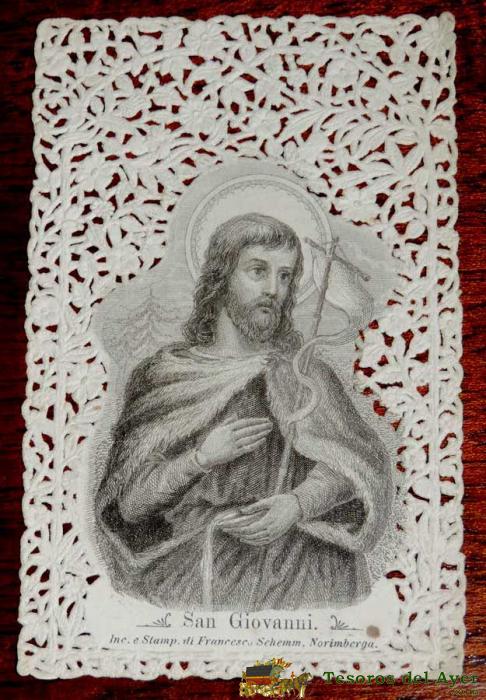 ANTIGUA ESTAMPA SAGRADA RELIGIOSA CALADA DE SAN GIOVANNI - BUEN ESTADO - MIDE 11 X 7CMS. ESTAMPA BORDADA, CALADA,