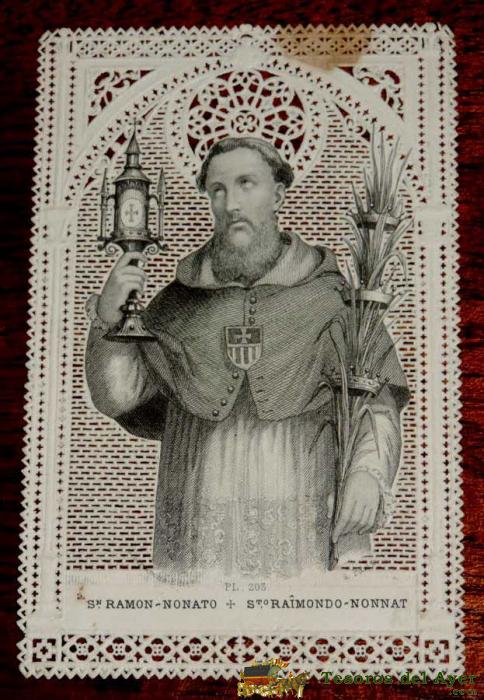 ANTIGUA ESTAMPA SAGRADA RELIGIOSA CALADA DE SAN RAMON NONATO - BUEN ESTADO - MIDE 11 X 7CMS. ESTAMPA BORDADA, CALADA,