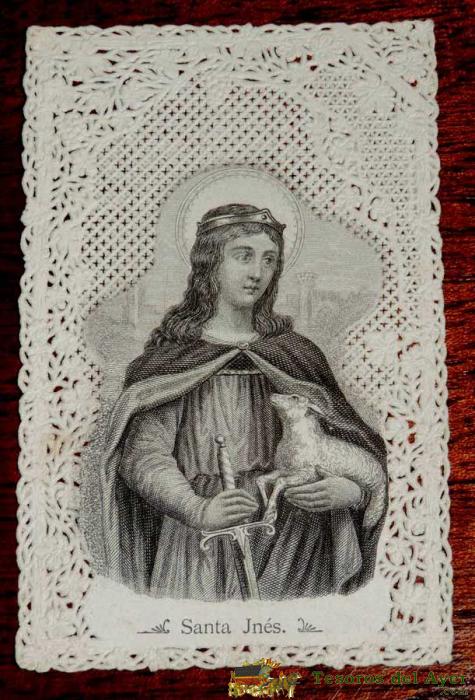 ANTIGUA ESTAMPA SAGRADA RELIGIOSA CALADA DE SANTA INES - BUEN ESTADO - MIDE 11 X 7CMS. ESTAMPA BORDADA, CALADA,