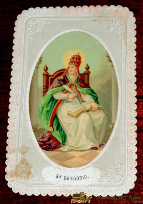 ANTIGUA ESTAMPA SAGRADA RELIGIOSA CALADA DE SAN GREGORIO - BUEN ESTADO - MIDE 9,5 X 6 CMS. ESTAMPA BORDADA, CALADA,