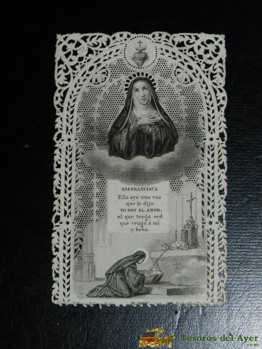 ANTIGUA ESTAMPA SAGRADA RELIGIOSA CALADA - BUEN ESTADO - SANTA FRANCISCA - MIDE 10 X 6,5 CMS. APROX. ESTAMPA BORDADA, CALADA, HOLY CARD LACE.