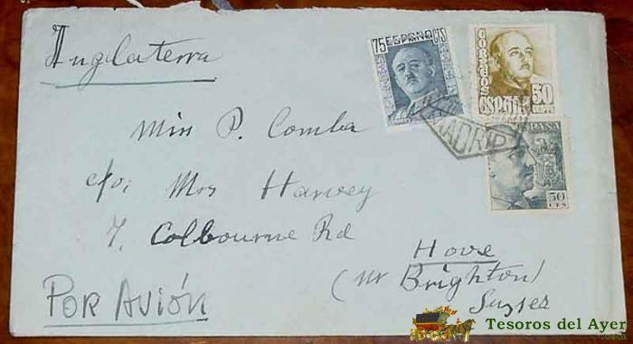 ANTIGUO SOBRE CIRCULADO POR AVION DESDE MADRID A HOVE (REINO UNIDO) EN 1949 - HISTORIA POSTAL, TAL COMO SE VE EN LAS FOTOS, BUEN ESTADO DE CONSERVACION