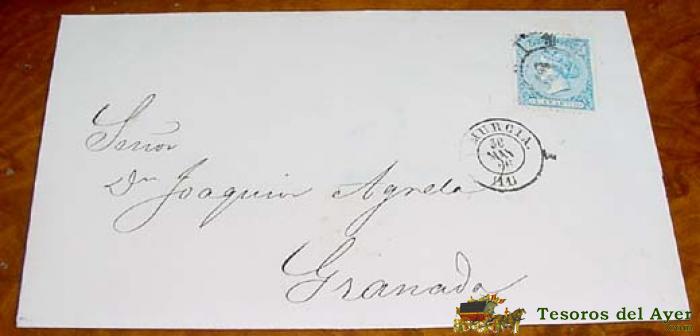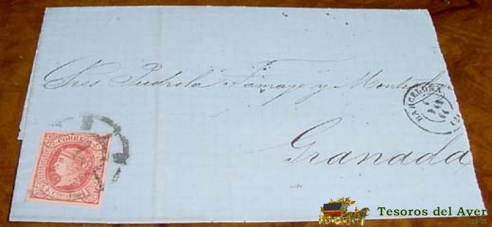 SOBRE CIRCULADO - ESPAÑA. CORREOS 1864 - 4 CUARTOS - MATASELLOS FECHADOR BARCELONA A GRANADA - HISTORIA POSTAL
